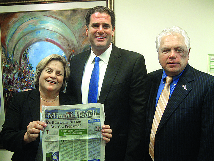 During her Congressional Delegation trip to Israel, Congresswoman Ileana Ros-Lehtinen met with Israeli leaders Benyamin Netanyahu, Shimon Peres and others. Here we see Ros-Lehtinen, her husband prominent South Florida attorney Dexter Lehtinen and the Israeli Ambassador designate to the US, Ron Dermer, holding up Community Newspaper’s Miami Beach edition. Mr. Dermer was a long time beach resident before leaving for Israel.