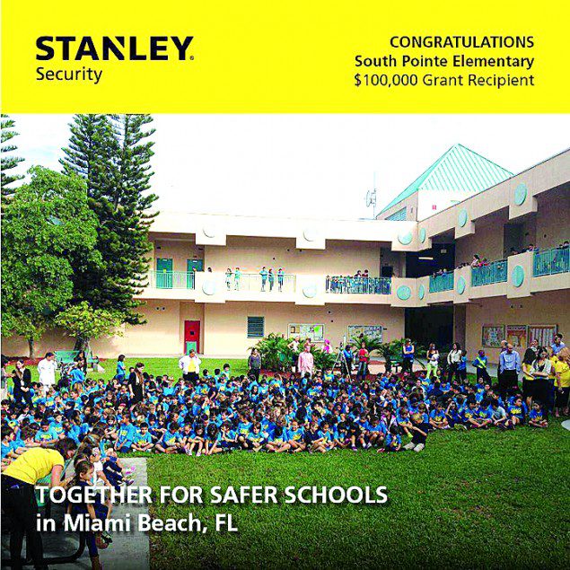 With the students, faculty, staff, parents and the Miami Beach community behind them, South Pointe Elementary received enough votes to place second in the Together for Safer Grant Program. Over the next year, Stanley Security is looking to install security cameras inside and outside of the school, as well as panic button in all of the classrooms.