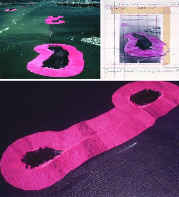 Surrounded Islands was finally completed on May 7, 1983 when suddenly gigantic floating skirts sprouted from every major vantage point in Miami. Like huge, pink frangipani flowers blooming out of the water, the installation, which started out at Bakers Haulover Cut, stretched southward to the islands around the Venetian Causeway and was on display for two weeks before being disassembled. While locals remember the project fondly, many are still unaware of how profound the clean-up effort was to our environment or that the equivalent of fifty years of garbage was removed. Today Surrounded Islands is remembered not only as a one of a kind installation project that doubled as a preservation effort but as a living tribute to Miami’s beauty and vibrancy.