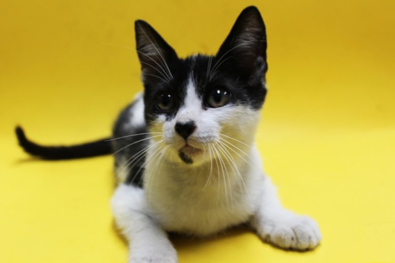 This calm and adorable three-month-old white kitten is named Jack! He’s the perfect companion to curl up with you on the couch after a long day.