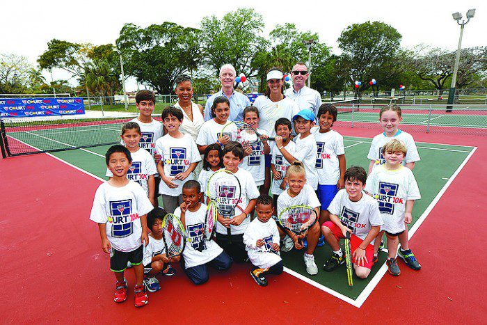 Miami native and U.S. Fed Cup Captain Mary Joe Fernandez , joins local youth at Tamiami Tennis Center in celebration of the 10,000th youth-sized tennis court throughout the country as part of USTA’s commitment to First Lady Michelle Obama’s Let’s Move! initiative.