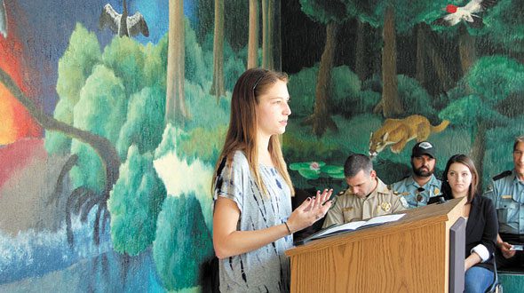The FWC conducted a dedication ceremony a few weeks ago to unveil the mural and garden. Dignitaries and officers attended the ceremony. There, Caitlin dedicated the artwork to FWC and thanked all who assisted with the project.