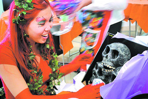 Her prize was an animated Halloween decoration.