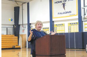 “Ms. Oliver spoke briefly to the middle school during Town Hall and then addressed two groups of combined sixth and seventh grade English classes,” said Ruthanne Vogel, Palmer media specialist. “Her presentation was an active writing workshop where the students brainstormed ideas and wrote ideas for science fiction tales of their own.”