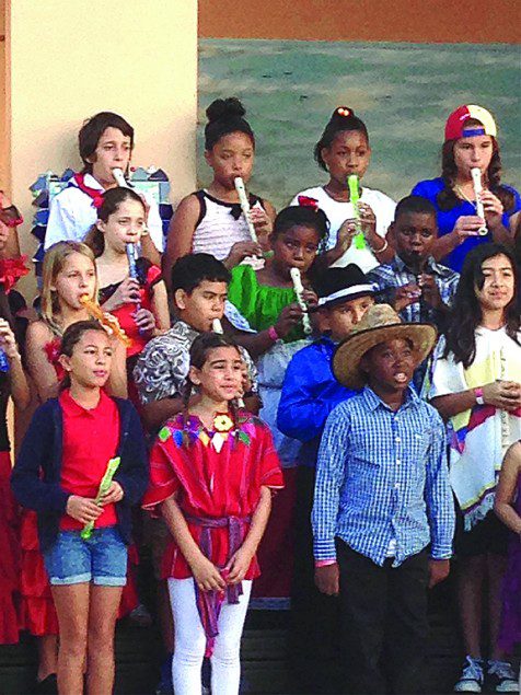 As part of the program a number of the students from all grade levels participated in a musical presentation with recorder flutes and singing, performing four songs. Celebrating Hispanic Heritage Month, many students came dressed in costumes representing their cultural backgrounds from various Latin American countries and there was a parade of them to the library.