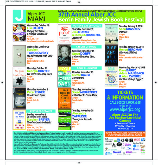 Author appearances for the 37th annual Alper JCC Berrin Family Jewish Book Festival are held at the Alper JCC and throughout the community. For tickets, locations and more information call 305-271-9000 ext. 268 or visit alperjcc.org.