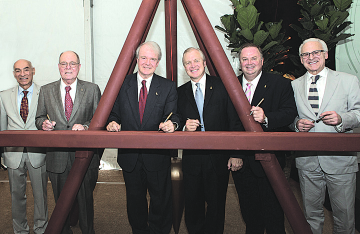 The construction of the $430 million state-of-the-art Miami Cancer Institute at Baptist Health South Florida in Kendall began on Aug. 8 with a groundbreaking ceremony, where individuals signed a steel beam sculpture designed as installation art for the completed cancer center.