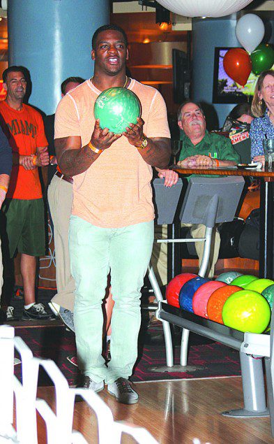 The University of Miami Sports Hall of Fame will hold the fourth annual Celebrity Bowling Tournament, hosted by Clinton Portis, on Monday, Feb. 23, from 6-9 p.m. at Splitsville in the Shops at Sunset Place in South Miami. Canes fans can bowl with some of their favorite former Canes all stars in a relaxing evening of family fun, food and Hurricanes camaraderie. This year, Hurricane great and 2014 UMSHoF inductee Clinton Portis will serve as host of the event. Other Hurricane greats who have attended past bowling tournaments include Reggie Wayne, Bubba Franks, Brett Romberg, KC Jones, Randal Hill and Darrin Smith. Proceeds from the event will benefit the Buoniconti Fund to Cure Paralysis, as well as the UMSHoF. Teams start at $400 for four bowlers, regular sponsor lanes are $1,000 and premium sponsor lanes are $1,500. Individual bowlers are $125 each, social tickets can be purchased for $50 for adults and $25 for children under 12. For more information, call 305- 284-2775.