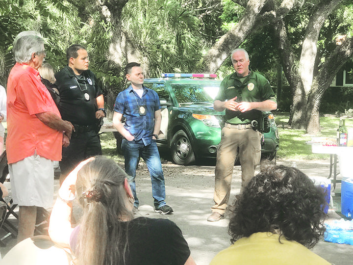 A Crime Watch Block Party took place on Saturday, March 4, at the area of 91 Street and 58th Avenue. Attending were 60 neighbors as well as Councilmembers Cheri Ball and James McDonald. Members of the Pinecrest Police helped make it happen and gave a presentation. (Photos by Christy Acosta.)