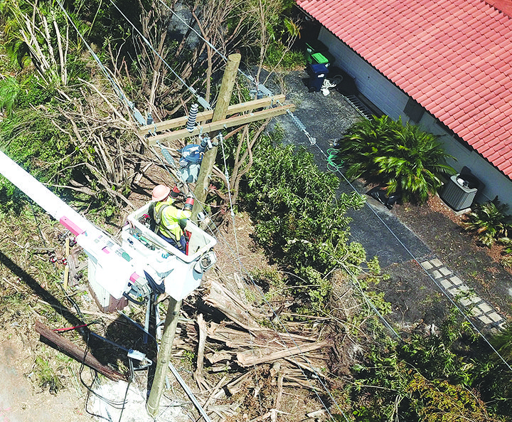 A drone captured this photo of an FPL worker restoring power in Pinecrest after Hurricane Irma.