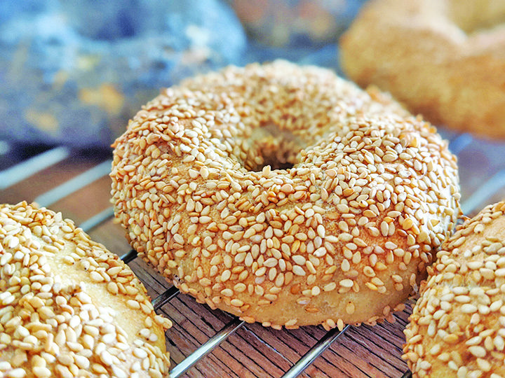 That said, the bagel has survived and flourished. Robert Sietsema, admired critic from New York City, wrote it this way: The bagel may or may not have been invented by Germans living in Poland in the 14th century, but here it’s associated with Jewish American cuisine, as well as being one of the city’s most iconic foods. Revered by people all over the country, it’s rare to find a faithful duplication elsewhere. True bagels are boiled briefly before being baked. (Turn one over: If it has a grid pattern on the bottom, it was first steamed rather than boiled, and is not a true bagel.) Chewy, glutinous, and highly caloric, one’s a meal and a very satisfying one, especially when schmeared with cream cheese and layered with lox or another form of cured fish.