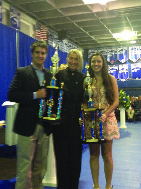 Gulliver students earn Kiwanis awardPictured are Gulliver Prep sophomores Louis Hamilton and Lauren Kaufman accepting the Kiwanis International Award for leadership and community involvement from Coral Gables Kiwanian Lynn Bauer of Bauer Financial in ceremonies at the school early last month. The award is given annually to students who havedisplayed strong character and excelled academically.
