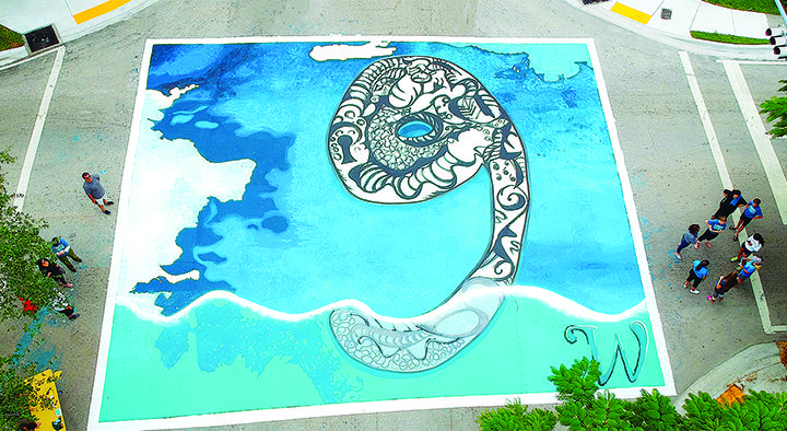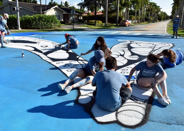 Four intersections along Killian Drive will temporarily feature art painted by high school students from Gulliver Preparatory, Dr. Michael Krop High School, South Dade High School, and Westminster Christian School. The street art is part of a broad and region-wide project by Cortada intended to raise awareness on the issue of sea level rise.
