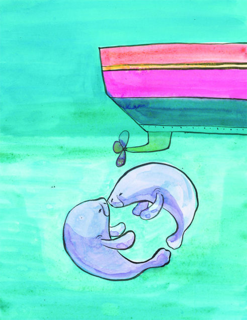Being mammals, manatees must surface every few minutes to breathe, and each instance puts them at risk of collisions with watercrafts. Their bodies bear the scars of their sometimes grave encounters with speedboats; these days, scientists can identify individual creatures by their scars or mutilated flukes.