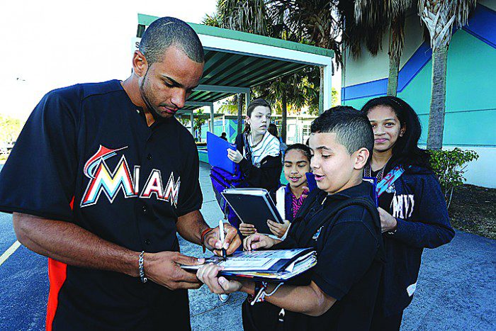 In addition to the various community endeavors, Marlins players, coaches and executives made appearances throughout the week at area schools, Little League organizations and corporate partners. Marlins employees visited several schools in Miami-Dade for check presentations, the raising of Marlins Ayudan flags and the implementation of a school plan of action to increase attendance, grades, participation and health and fitness.