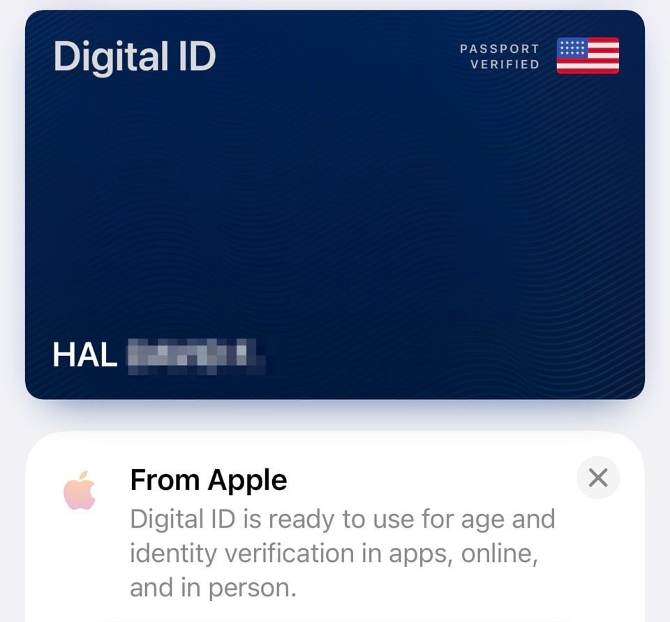 To install your Digital ID, open the Apple Wallet app > Select the + on upper right > Choose Driver’s License and ID Cards > Choose Digital ID. In the quick setup, you will first be asked to take a photo of your physical passport and scan the chip inside your passport. Following that, you will take a live photo of yourself. These steps take under a minute. After a brief verification process, your Digital ID appears along your other stored items in your Apple Wallet.