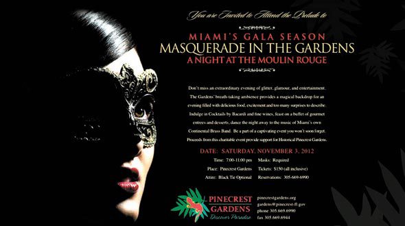 The Village social season will kick off on Saturday evening, Nov. 3, when Pinecrest Gardens hosts its “Masquerade in the Gardens — A Night at the Moulin Rouge” annual benefit. The evening under the stars in the botanical gardens will be a night that recalls exotic fantasies and pleasures of the famed Parisian nightclub. The gala event begins at 7 p.m. on Lakeview Terrace with cocktails and entertainment, including renowned jazz diva Debby Orta and her trio (provided by KCC productions), stilt walkers, jugglers and fire eaters.