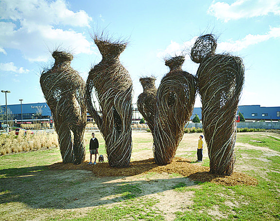 The installation will require the participation of 100 volunteers who will span generations in age and will add dynamic creativity to the sculpture which is built-up branch by branch and twig by twig. Because of the nature of the materials used the sculpture will last about two years.