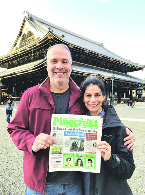 Pictured are Eddie and Lisa Romaguera, longtime Pinecrest residents taking a moment at ZENsational Higashi Honganji Temple in Kyoto, Japan. Thanks for bringing your favorite newspaper.