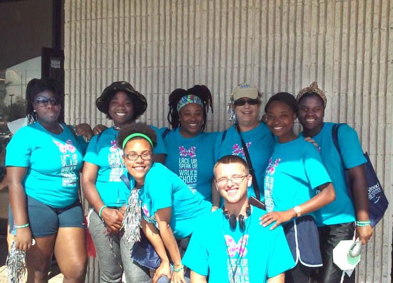 On Tuesday, March 17, 2015 HJCC students accompanied by their instructor Ms. Carmen Saez and CTR specialist Ms. Charkivia Lovett, participated in Lauren’s Walk, Walk in my Shoes, event. The event was to “race to eliminate sexual violence”. They walked for three miles to show their support for the cause. Pictured back row, (left to right) Tamira Arrington, Derna Bausejour, Avione Johnson, Carmen Saez, Charkivia Lovett and Shadee Harris. Front row (left to right) Sabrina Famiglietti and Justin Marker. Photo courtesy of Brite Eyes Photography.