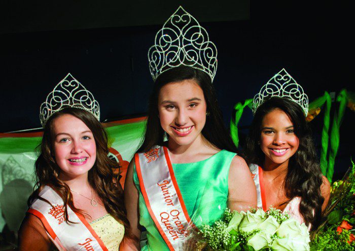 The Junior Orange Bowl celebrated a night of glamour and royalty as the 2013-2014 Junior Orange Bowl Royal Court was crowned at the Rebeca Sosa Theatre in Miami Springs on Saturday. Camilia Romero, a 7th grader from Somerset Academy, was crowned as the 62nd Junior Orange Bowl Queen. Joining Queen Camilia are Princesses Skyler Odin, an 8th grade student at David Lawrence Jr K-8, and Alexis Santana, a 7th grade Florida Virtual Home School student.