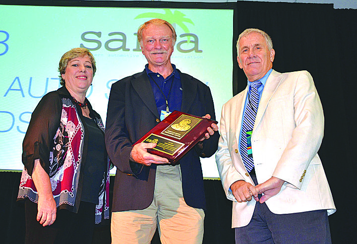 The award is named for the late automotive journalist Terry Jackson and recognizes a member for outstanding service to SAMA and for contributions to the auto industry in South Florida. Jackson’s wife, Marjie Lambert, and last year’s recipient, Paul Borden, made the presentation.