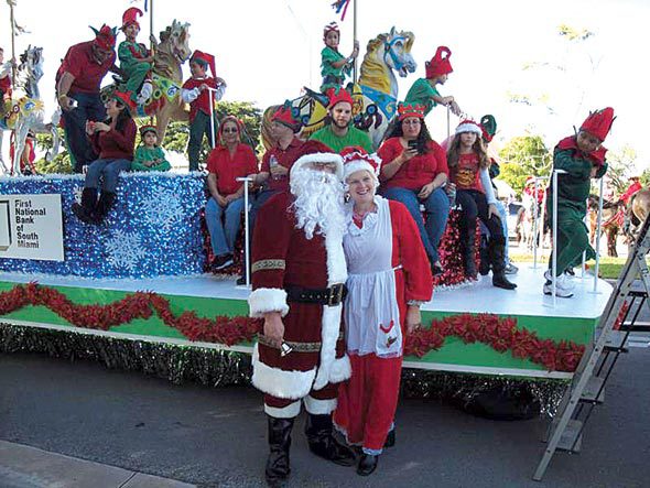 South Miami Hospital and Red Sunset Merchants Association will have festive floats in the parade, and Santa Claus will make his grand appearance on the First National Bank of South Miami float. South Miami city officials, South Miami law enforcement, including the Honor Guard and Police Explorers, along with Miami-Dade firefighters will also spread holiday cheer.