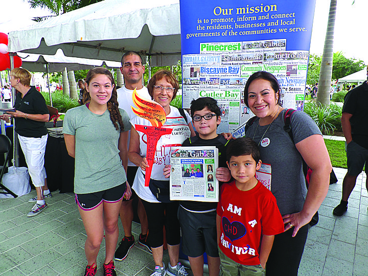 Thousands gathered early on Saturday, Oct. 26, for the American Heart Association’s Annual Heart Walk at Marlins Park. With picture perfect weather, the crowd enjoyed visiting vendor tables, consuming healthy snacks including some great Del Monte fruit, and a fun program announcing top fundraisers and more. Ongoing music also added to a spirited morning of exercise and fun. As always, Miami’s Community Newspapers was on hand to support AHA and those whose lives have been saved because of the efforts of this organization. Among those spotted in the crowd were Billy the Marlin who enjoyed posing for photos with everyone; Coral Gables Hospital’s Maria Gidley with her new baby out for his first Heart Walk; Gulliver School’s Debi Moore who walked on the GFWC Coral Gables Woman’s Club team. Also volunteering for that team was veteran Heart Walk participant Norris Perez and her family who came down from Broward County. Some may remember that Norris’ husband, a police officer, suffered a stroke years ago and was given little hope for a full recovery. He proved everyone wrong and is back to work and is most supportive of AHA and its mission.
