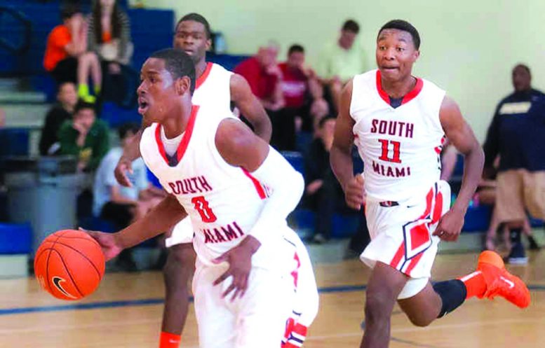 Julius Jobe of South Miami High School leads the break in the Junior Orange Bowl Basketball Classic. South Miami opened the tournament with a win against Gimnazija Bezigrad of Slovenia. The Cobras finished third in the boys division. The South Miami girls team also competed in the Basketball Classic.