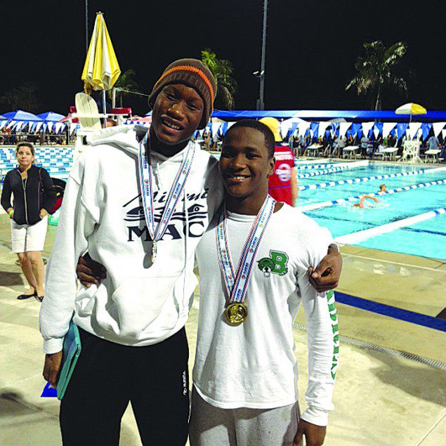 St. Brendan High School senior Wayne Denswil won two individual events, the 100-meter butterfly and 200-meter individual medley, at the FHSAA State Swim Meet in Stuart on Nov. 9. Denswil is the first swimmer in the school’s history to win individual events at the state meet.