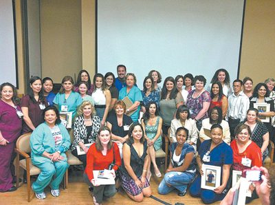 The nurses honored were: Marilyn Alvarez, RN; Vera Bryant, RN; Diane Callas, RN; Maria Cobo, RN; Elizabeth Conover, RN; Diane Deaza, RN; Melissa Dobol, RN; Connie Drutman, MD; Ava Duke, RN; Delores Eachus, RN; Erika Encalada, RN; Shiela Escobar, RN; Cassandre Fernandez- Andrew, RN; Rosario Flynn, RN; Courtney Fry, RN; Melissa Garcia, RN; Hannah Gauran, RN; Wil Gil, RN; Jasmin Guzman, RN; Miriam Hernandez, RN; Paula Hernandez, RN; Claudia Hodgson, RN; Michelle Houellemont, RN; Ellen Denise Houston, RN; Grace Kittelle-Cintas, RN; Jill Knight, RN; Delphena Magloire, RN; Maria Marcial, RN; Simla Mathew, RN; Patti Miller, RN; Jenny Navarro, RN; Eugene Obando, RN; Leyzer Ramirez, RN; Maria B. Serrano, RN; Janice Sodemann, RN, and Elizabeth Zike, RN.