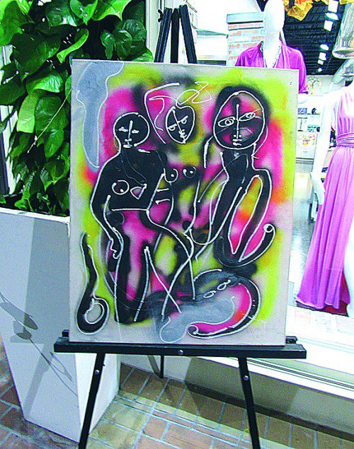 Isabel’s Find Home Accessories hosted artist Mike Tesch (www.teschart.com) and Somi, SoU Boutique featured the paintings of Neith Nevelson (www.neith-nevelson.fineartamerica.com), the granddaughter of the sculptor Louise Nevelson. The Tropical Audubon Society made the Doc Thomas House available for the exhibit, “Flora & Fauna at Audubon,” featuring Grove House Artists Perri Cox, Pauline A. Goldsmith, Sushita Oliphant, Bobbi Headder, Beth Warner, and Karen Deilke (www.grovehouseartists.net). Green Monkey, Boom Shanti and Respice featured Kirby and Richard Tiberius’ oil paintings on board (www.tiberiusart.com), hand-painted handbags by Style Addicts, and photography of Elena Ehrenwald (www.elenaehrenwald.com), respectively. The Wirtz Gallery in the First National Bank exhibited the watercolors of Terry Arroyo Mulrooney (www.terrymulrooneystudios.com).