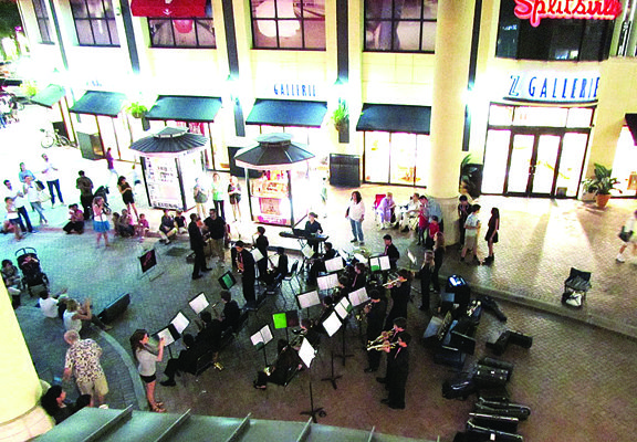 Louis Prima’s “Sing, Sing, Sing” rises from the Shops at Sunset. The South Miami Middle School Jazz Band delights patrons at Brother Jimmy’s Barbecue and to those passing by, while proud parents take pictures of their chil-dren performing American jazz classics under the direction of Francisco Williams.
