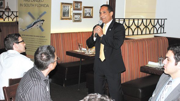 While Chamber South members and guests enjoyed chicken marsala at Carrabba’s Italian Grill during their recent monthly networking luncheon, guest speaker and County Commissioner, Joe Martinez, spoke to the attentive audience about his partnership with developer Donald Trump to build an 800 acre film studio on the former Homestead Air Force Base site.