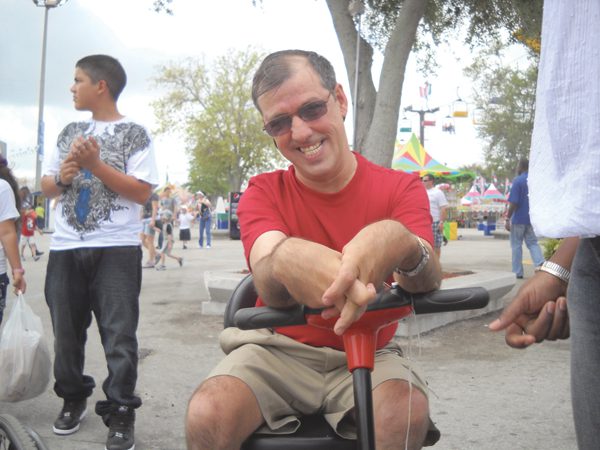 Since 1986 I have been working at my family business doing accounting. I have an active life like anybody. I am a member of my church for many years, I was baptized in 1974 by Pastor Hector Garcia. I have been bowling in a disabled league for 31 years. I learned how to drive in high school and now I feel independent going everywhere. I thank God for giving me my family, friends, and this community in Miami that has loved me and supported me and made my life worth living. My grandmother and I traveled around the country. We went to New York, Boston, San Francisco, Chicago, North Carolina and other places. We also went on many cruises. She took me to the finest restaurants and would fight with anyone who stared at me. She always said that I was just like anybody else. For God, I am not disabled. With that in mind, now that my grandmother is gone, I still go everywhere and do not care what people think. I go out with friends, we dine out, go to the movies, parks, malls, Fairchild Gardens, concerts and plays. I like the beach, my grandmother and I went every summer. She said it would help me to walk better and she was right. Grandmothers know what they are saying. I like the outdoors, to just sit and watch the ocean maybe that is why I enjoy going on cruises. I am an animal lover, I have had pets all my life. It makes me happy to help others. I would rather give then to receive. I am always smiling because the Lord is with me.