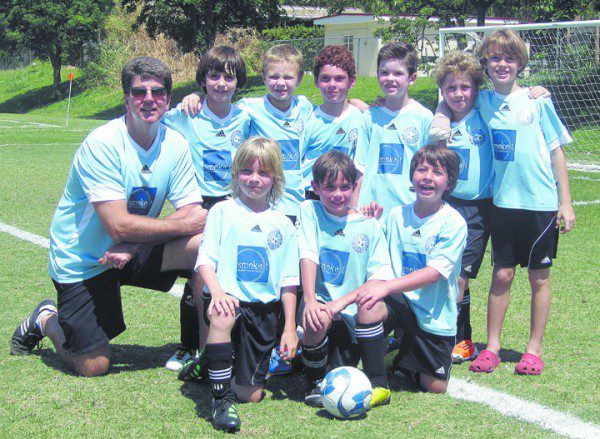 The South Miami United U8 Strikers team faced the St. Phillips Eagles on May 21 to decide who would be the new U8 champions. After falling behind 1-0 in the first half, the Strikers rallied behind Santiago Junco’s two goals and finished with one more goal by Zachary Maurno. The final score of 3- 1 gave the Strikers a 12-0 record for a very successful season under their coach Dr. Tom Maurno. Pictured are (l-r, top row) Coach Maurno, Zachary Maurno, CJ Janette, Matthew Gallagher, Neil Schiff, Jake Wolfe, Jonathan Gleason; (bottom row) Skyler Bryan, Santiago Junco and Andre Vogel.