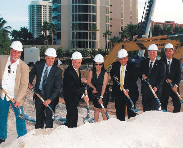 Members of the Sunny Isles Beach City Commission, the project manager and developers recently held a ceremonious groundbreaking for the Mansions of Acqualina. When finished the luxury high rise will stand directly south of the existing Acqualina Resort and Spa known worldwide for its hospitality.