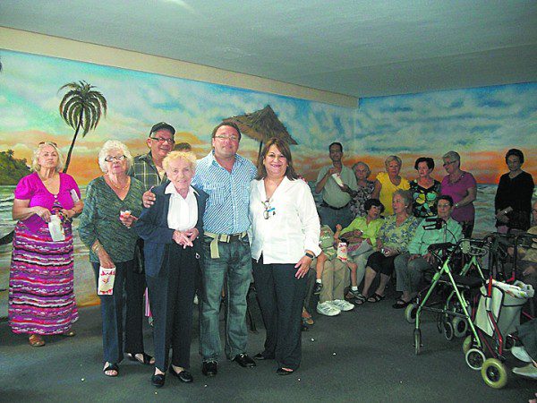 Property Manager Ada Hernandez and Assistant Manager Helen White welcomed Vice Mayor Lewis Thaler and residents of Marian Towers for the unveiling of the building’s new Seaside Mural.