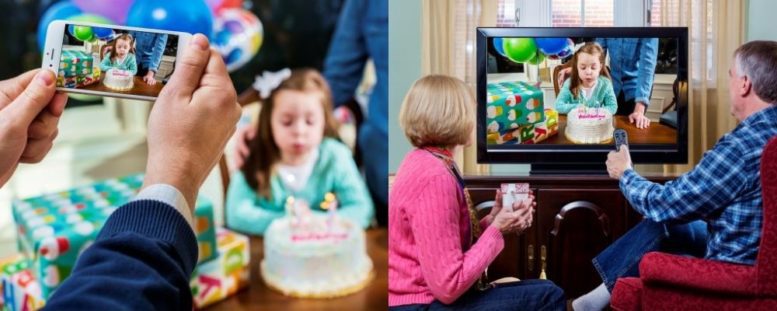 Imagine that you are watching your child’s high school graduation and you are videotaping the key moments on your iPhone.  Then, with just a few clicks on your phone, your parents can watch the same video right on their television in real time!