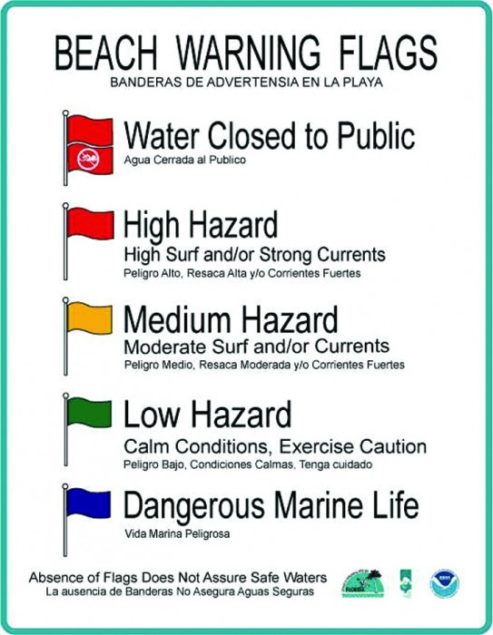 • Check warning flags daily and ask a lifeguard about the surf and beach conditions.