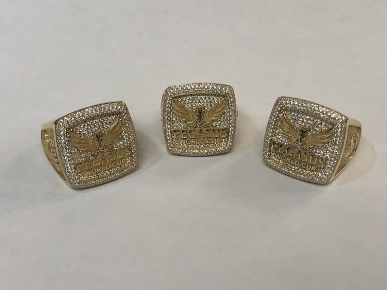 The Stronach Group’s $16 Million Pegasus World Cup Invitational was held on Saturday, January 27, at Gulfstream Park in front of a record crowd of more than 10,000 fans. Guests from around the world including Pharrell Williams, Lenny Kravitz, Olivia Culpo, Wilmer Valderrama, Post Malone, Ludacris, Jermaine Dupri, Prince Royce and Carson Kressley, to name just a few, descended upon South Florida to witness the world’s richest Thoroughbred horse race. Champion, and 2017 Horse of the Year, Gun Runner took home $7 Million in winnings and, beginning a new tradition, Belinda Stronach, Chairman & President of The Stronach Group, presented the winning owner, jockey and trainer with the first ever Pegasus World Cup Invitational Championship Ring. Designed by local South Florida celebrity jeweler, Christopher Petrillo (also known as “Boodaddy” of Boodaddy Diamonds), the 18K yellow gold Championship Ring is inspired by the iconic Pegasus statue at Gulfstream Park and boasts over 3.5 carats of VVS round brilliant cut diamonds, valued at $50,000.
