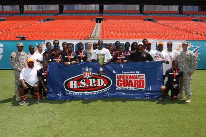 The three-day event began with the HSPD Symposium at Nova Southeastern University on Friday, June 14. The event focused on character development and life skills training. A variety of guest speakers, including Miami Dolphins General Manager Jeff Ireland, Dolphins Youth Programs Director Twan Russell, Dolphins long snapper John Denney, Dolphins team physician Dr. Gautam Yagnik and Under Armour’s George Hegamin, gave the students practical life lessons and advice aimed to help them as they enter adulthood.