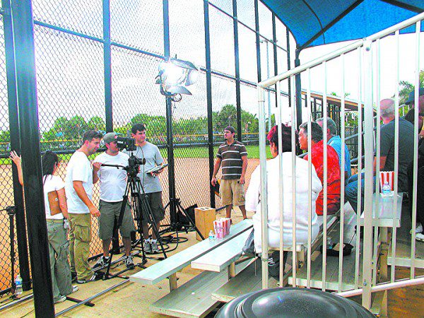 Usually the home for softball games and other sports activities, Palmetto Bay Park’s ball field and bleachers became the setting for a series of commercials that were shot there on Aug. 31, between rain showers that slowed production.