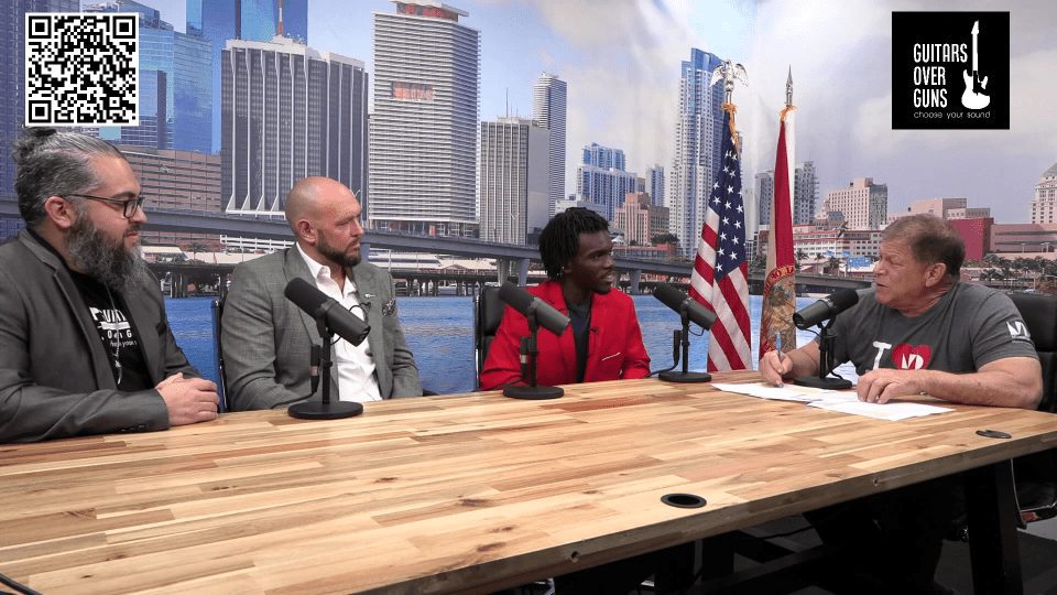 Grant Miller talks with Dr. Chad Bernstein, Co-Founder/CEO, Malik, Student at South Dade High School and Antonio Correa, Program Manager/Former Mentor for Guitars Over Guns.